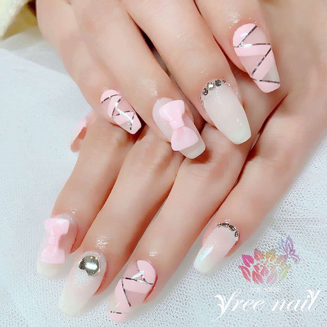 Free Nail フリーネイルさんのインスタグラム写真 Free Nail フリーネイルinstagram お客様ネイル リボンネイル Sweet ご来店ありがとうございました ネイルアート ジェルネイル ネイルサロン 大阪